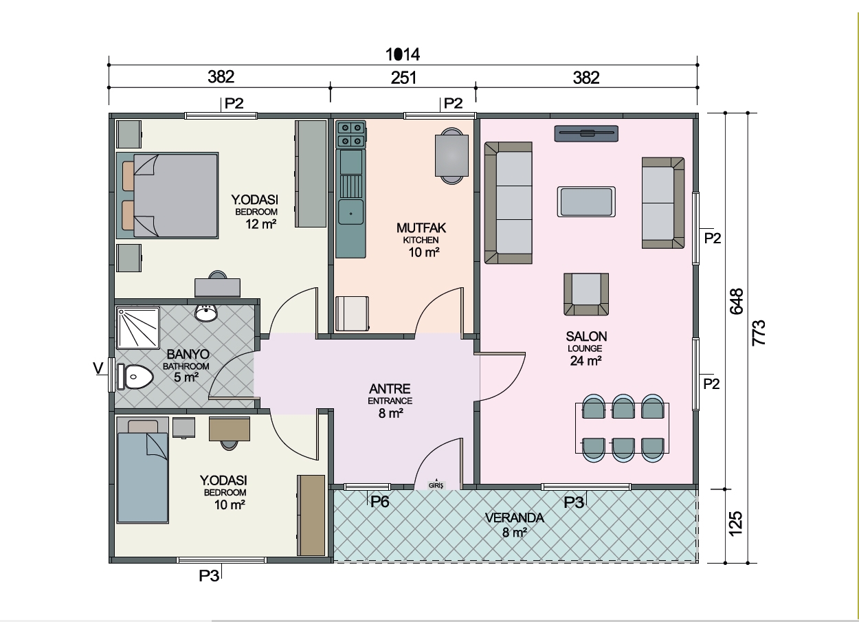 70 + 8 m2 veranda tek katlı prefabrik konut