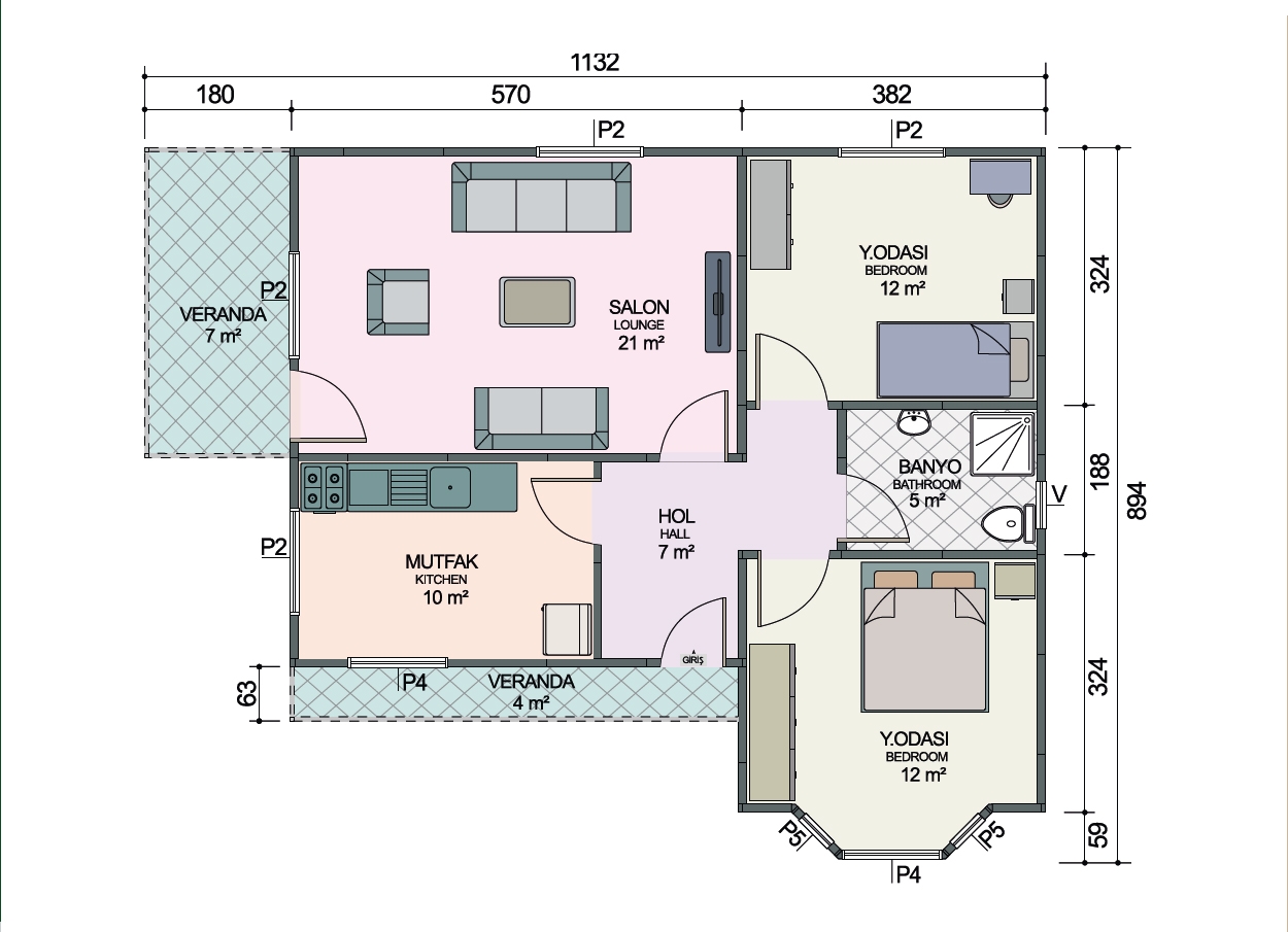 70 + 11 m2 veranda tek katlı prefabrik konut