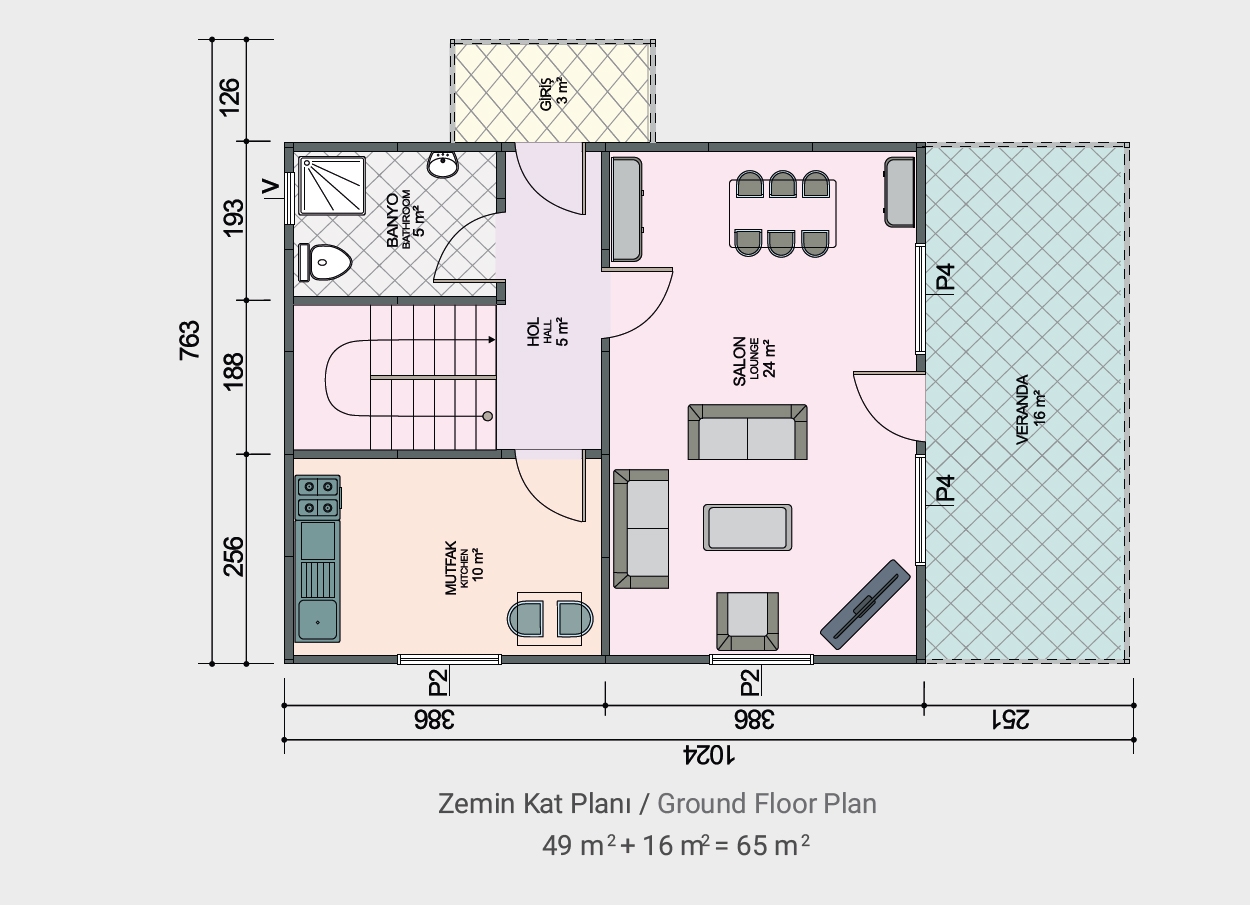 98 + 21 m2 veranda iki katlı prefabrik konut